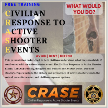 Please join us at The Civilian Response to Active Shooter Events (CRASE) course being offered at Israel Congregation. This course is designed and built on the Avoid, Deny, Defend strategy developed by the Advanced Law Enforcement Rapid Response Training (ALERRT).
